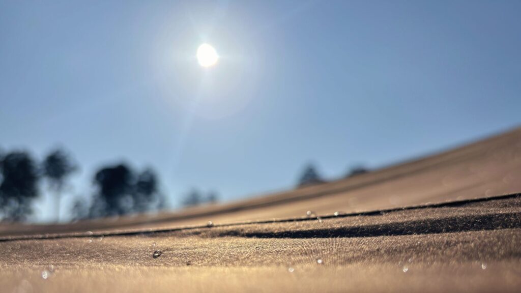 気温差でいつもより多い朝露を日光で乾かしました
