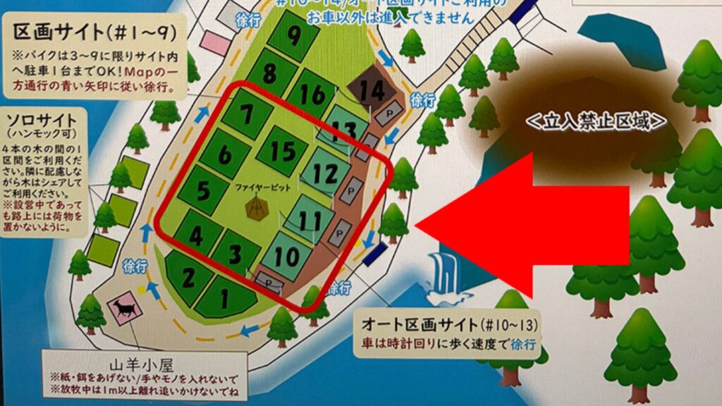 バス停から徒歩5分、キャンプ場の入り口にはゲートがあり、部外者が入りにくく安心です。