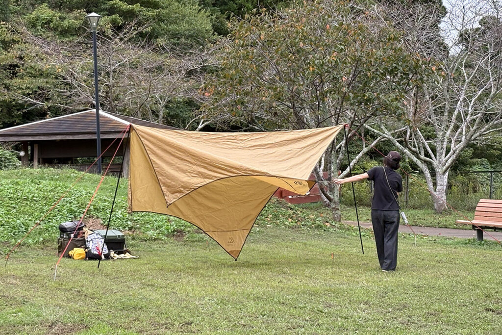 「今回はタープの小川張りに挑戦!」