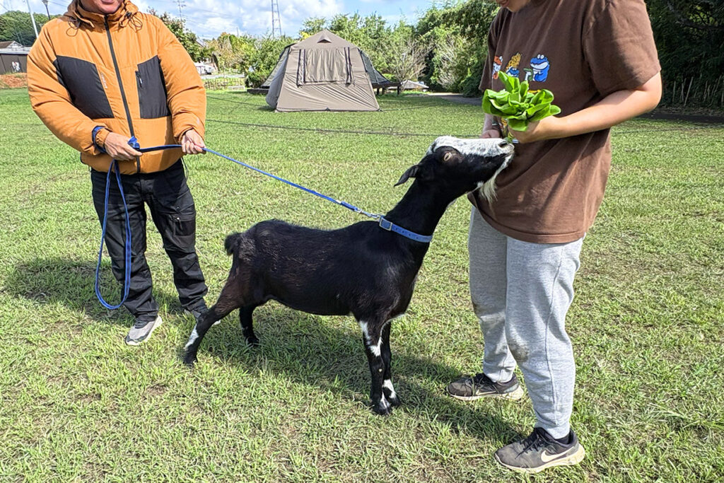 UJackむつざわ専属アイドル兼草刈り隊のヤギ「二等兵」もお見送りしてくれました!